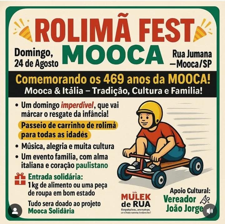 Comemorando os 469 anos da MOOCA! Mooca Itália – Tradição, Cultura e Família! 31° evento na Mooca
